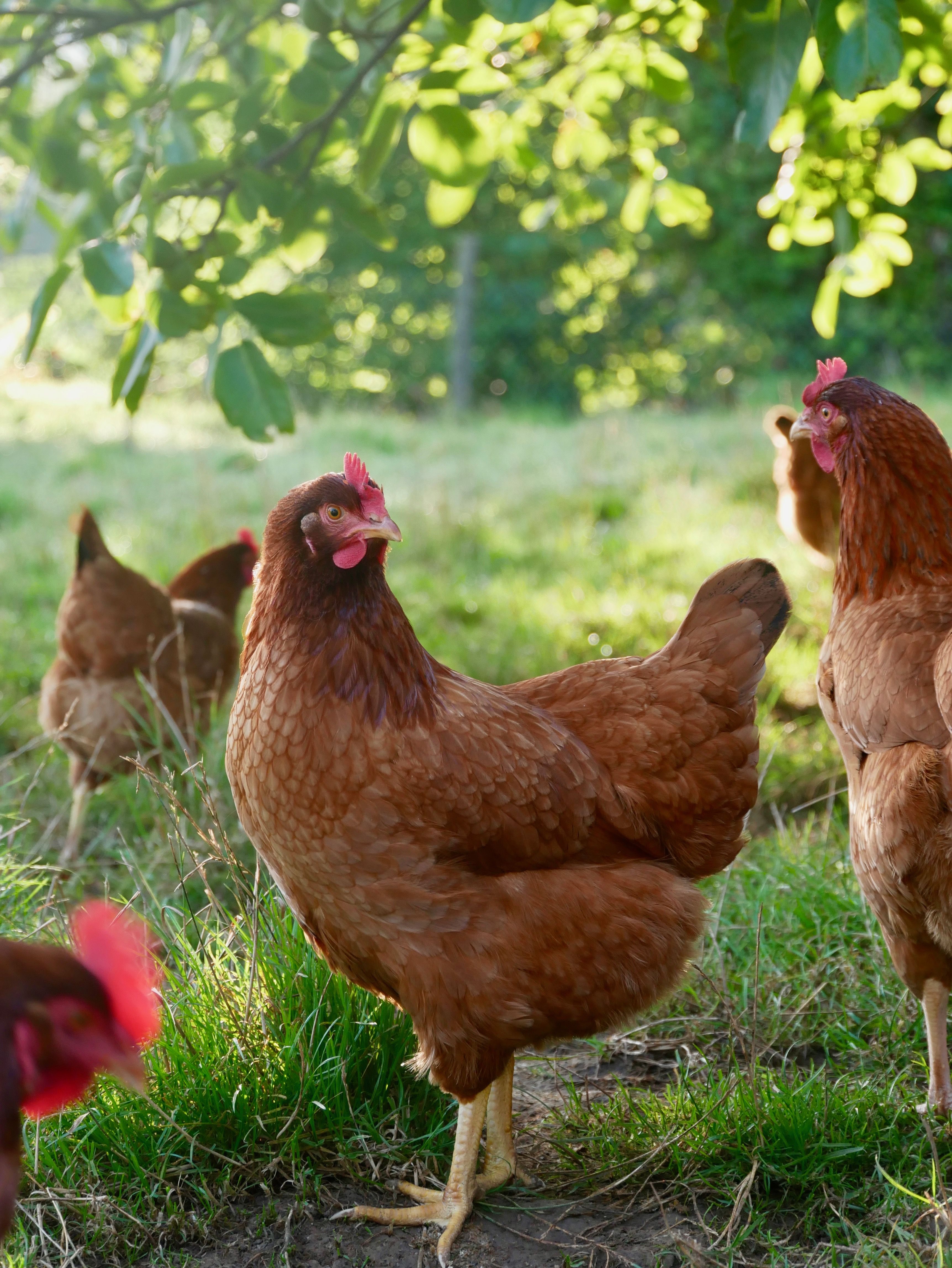 Poules et poulets arrivent à un jour, comme les palmipèdes. Ils sont également élevés en plein air, mais ils auront toujours accès à un bâtiment.